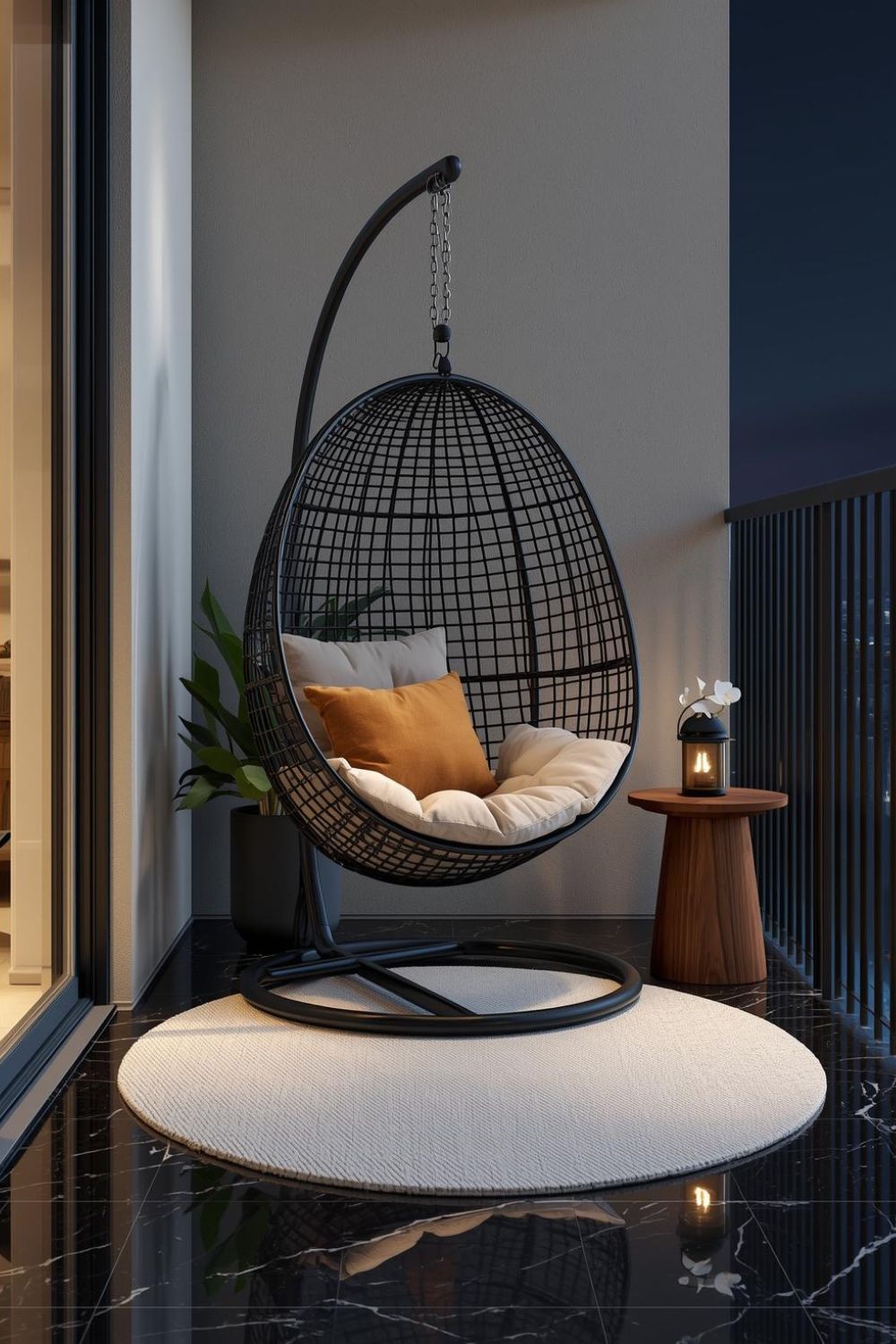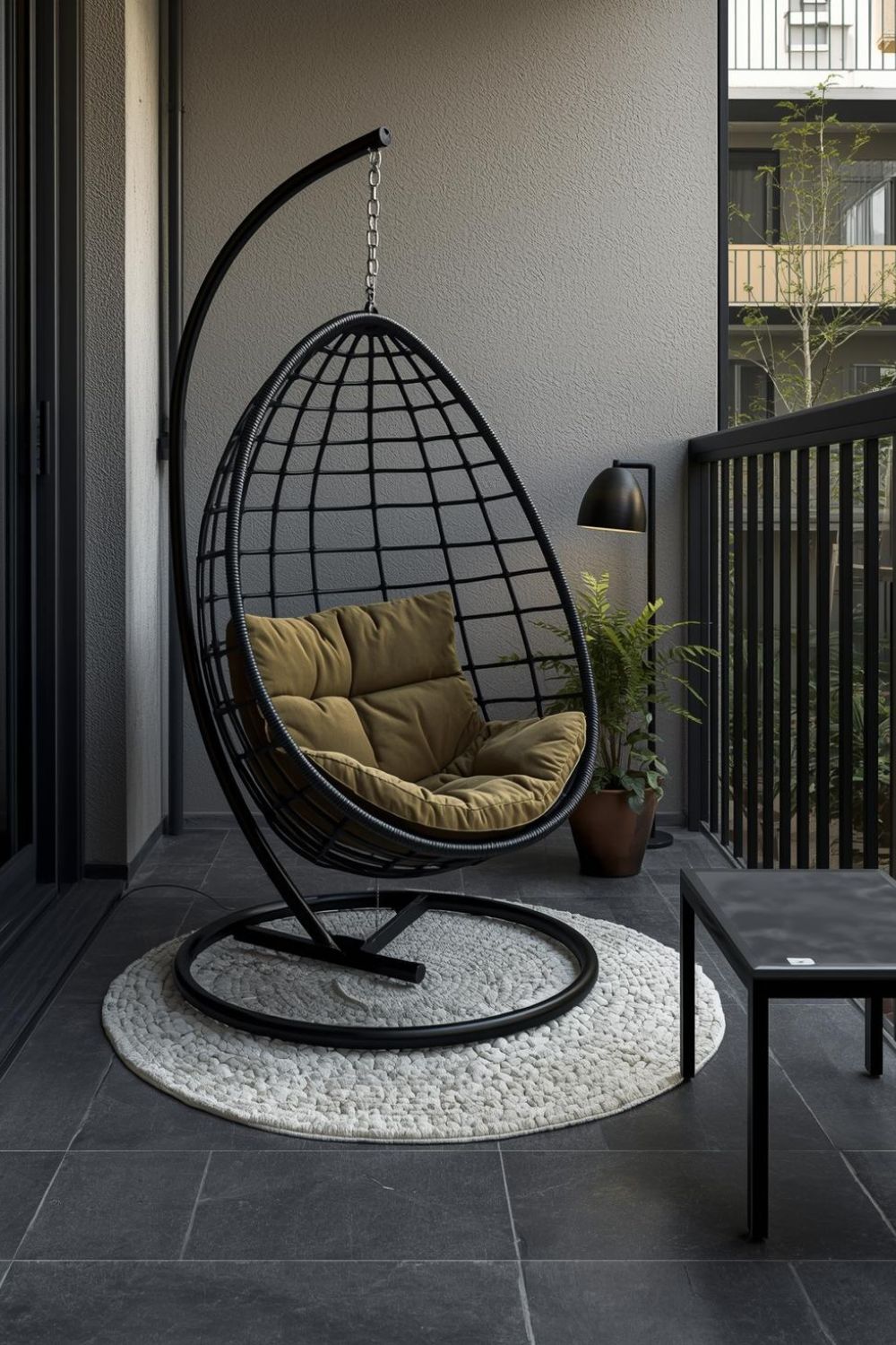 Minimal Black Frame Egg Chair for Slim City Balconies
