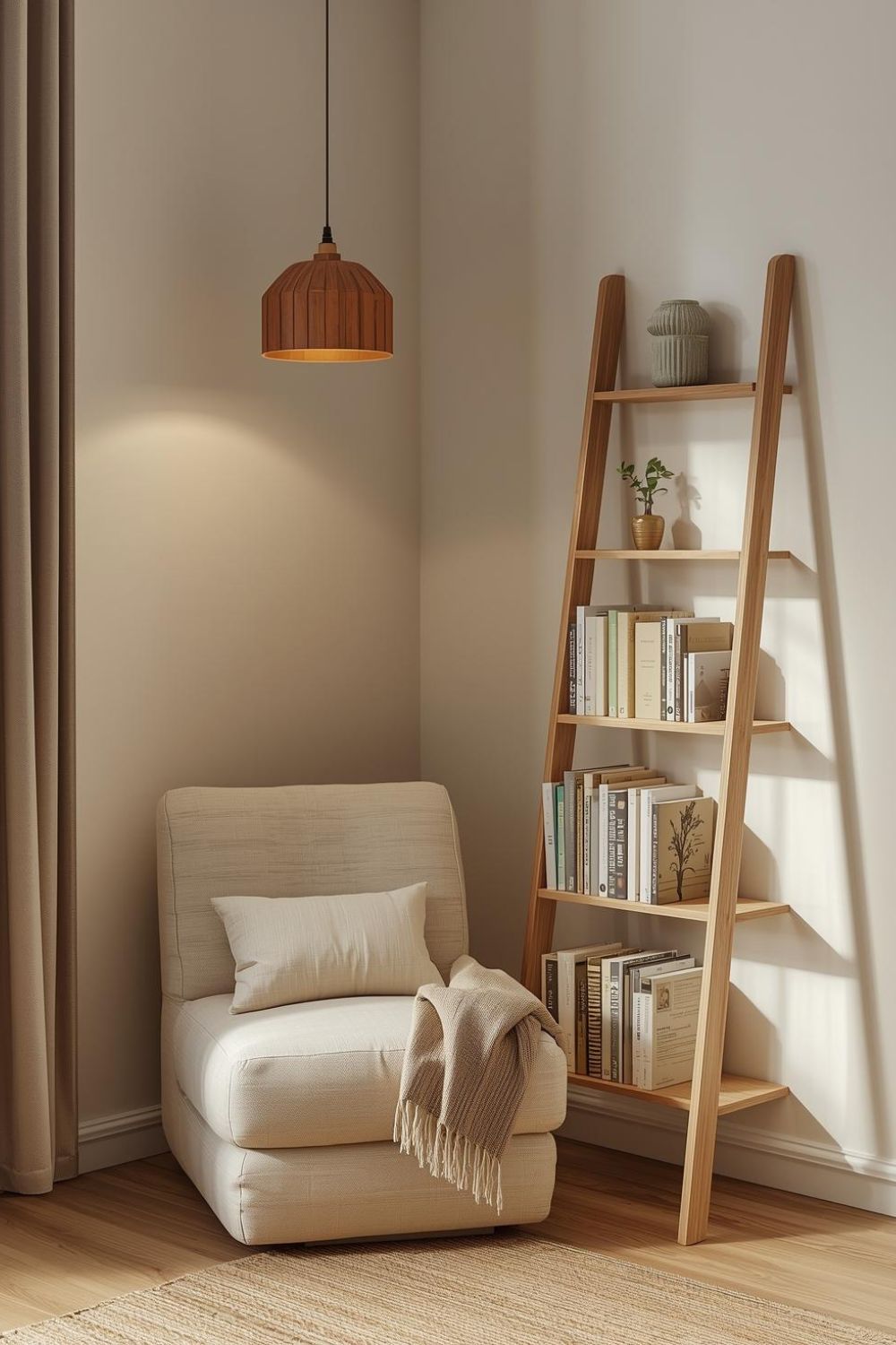 Ladder Shelf Reading Corner for Vertical Storage in Apartments
